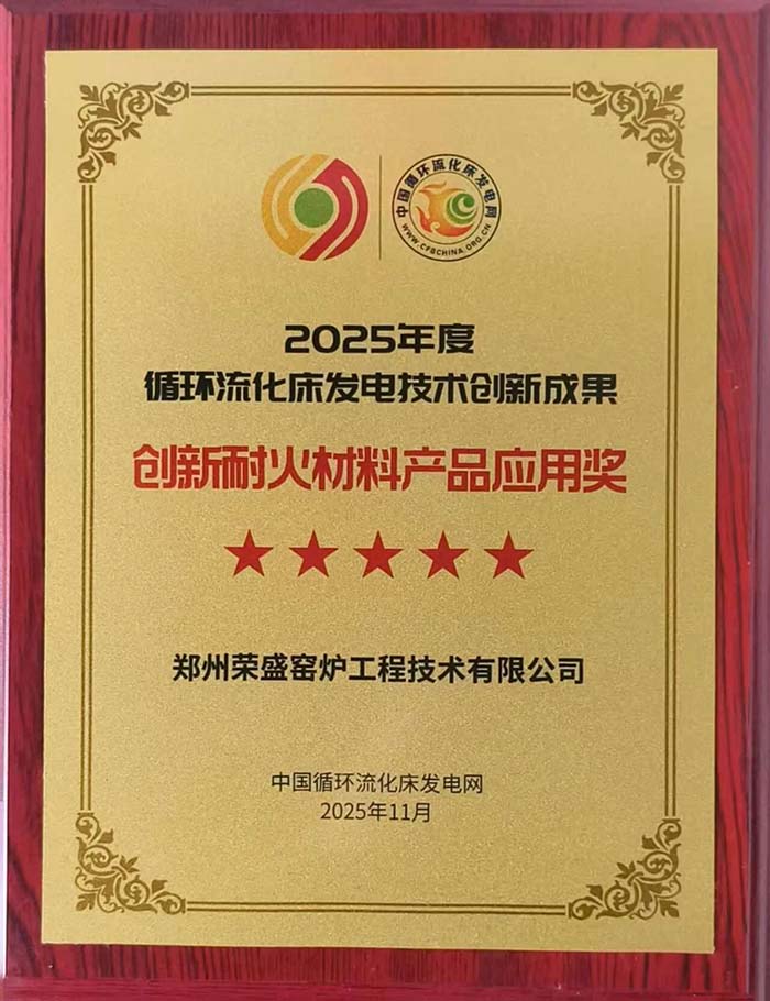 在本次大會(huì)上,鄭州榮盛窯爐工程技術(shù)有限公司憑借其在耐火材料產(chǎn)品研發(fā)與應(yīng)用方面的良好表現(xiàn),榮獲2025年度循環(huán)流化床發(fā)電技術(shù)創(chuàng)新成果“創(chuàng)新耐火材料產(chǎn)品應(yīng)用獎(jiǎng)”。該獎(jiǎng)項(xiàng)是對(duì)公司在循環(huán)流化床鍋爐耐火材料領(lǐng)域持續(xù)創(chuàng)新、技術(shù)突破與產(chǎn)業(yè)化應(yīng)用成果的權(quán)威認(rèn)可。