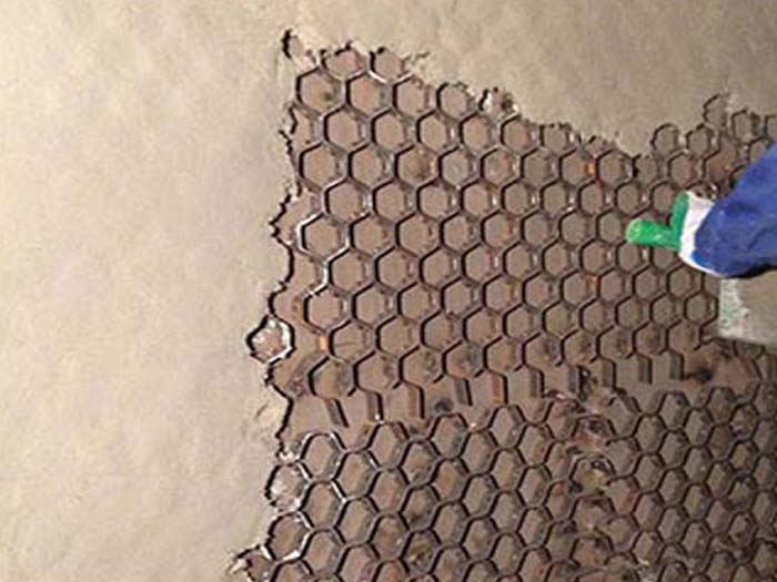在內(nèi)六角龜甲網(wǎng)上施工耐火材料時,一般采用涂抹、搗打施工,以下是一般的步驟和注意事項: