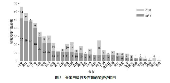 垃圾處理的主流技術(shù),在經(jīng)濟(jì)比較發(fā)達(dá)的城市,垃圾焚燒廠較多,垃圾焚燒發(fā)電在我國進(jìn)入了快速發(fā)展階段。如圖3 所示,截至2019 年2 月,我國(不包含港、澳、臺地區(qū))在運(yùn)行的生活垃圾焚燒廠數(shù)量已達(dá)到418座,還有167 座正在建設(shè),其中,機(jī)械爐排爐占80%以上。