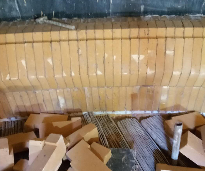 在砌筑過程中,應(yīng)使用合格的耐火泥,并按規(guī)定比例加水?dāng)嚢杈鶆颉?br />耐火磚應(yīng)按設(shè)計(jì)要求進(jìn)行選擇,確保尺寸、形狀符合要求,不得使用破損、裂紋等不合格的耐火磚。