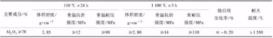 (1) 主要化學(xué)成分為Al2O3,占比≥78%,強(qiáng)度高、耐高溫、耐酸性物質(zhì)侵蝕。